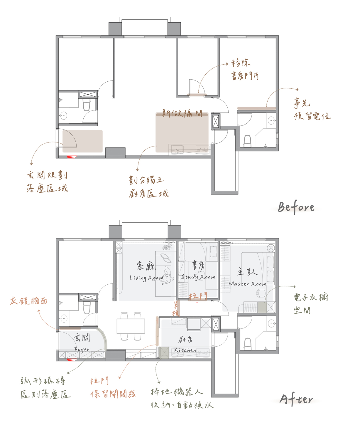 牆面與櫃體自然契合,線條簡潔而細膩;