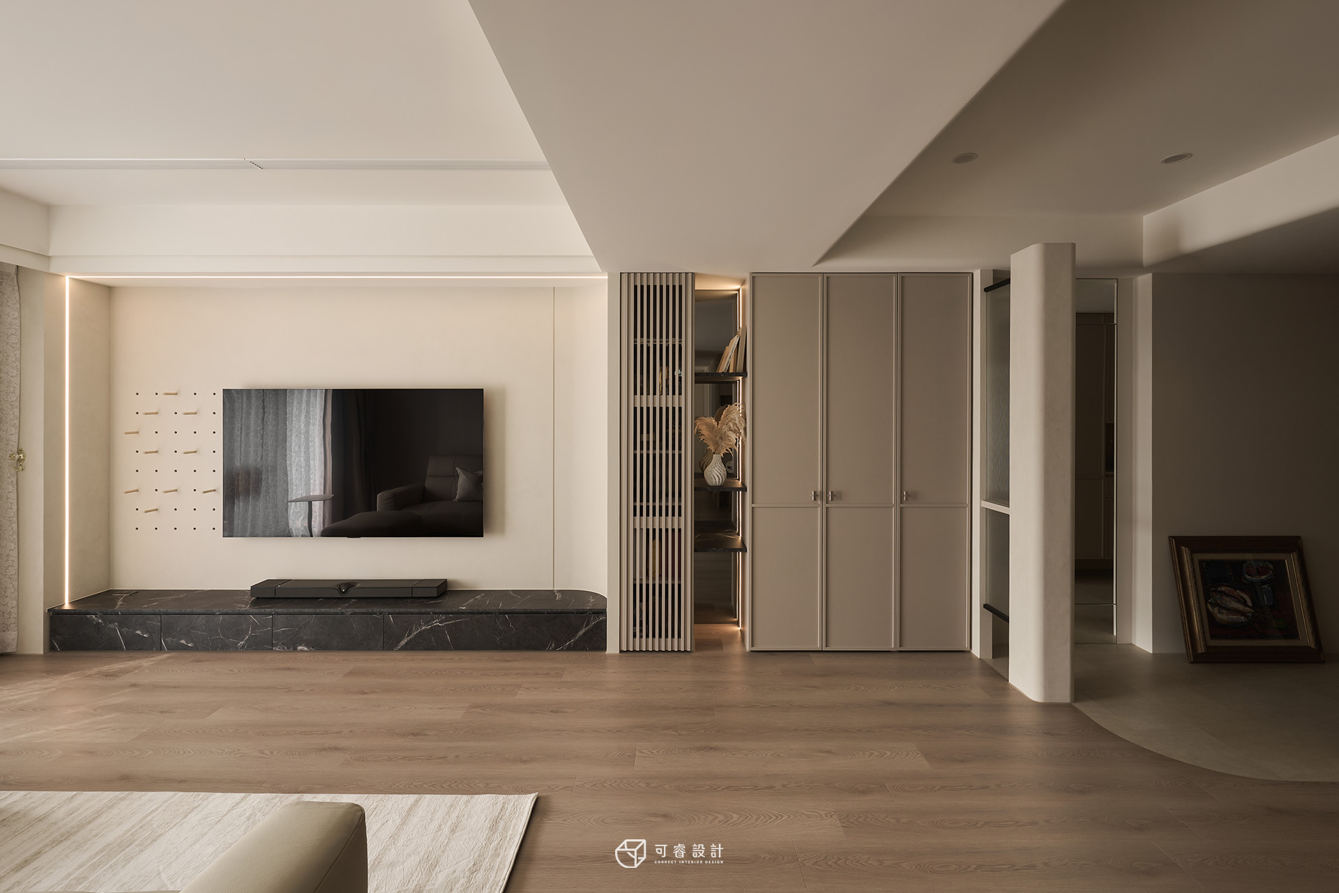 客廳電視櫃體選用大理石作為視覺定點,