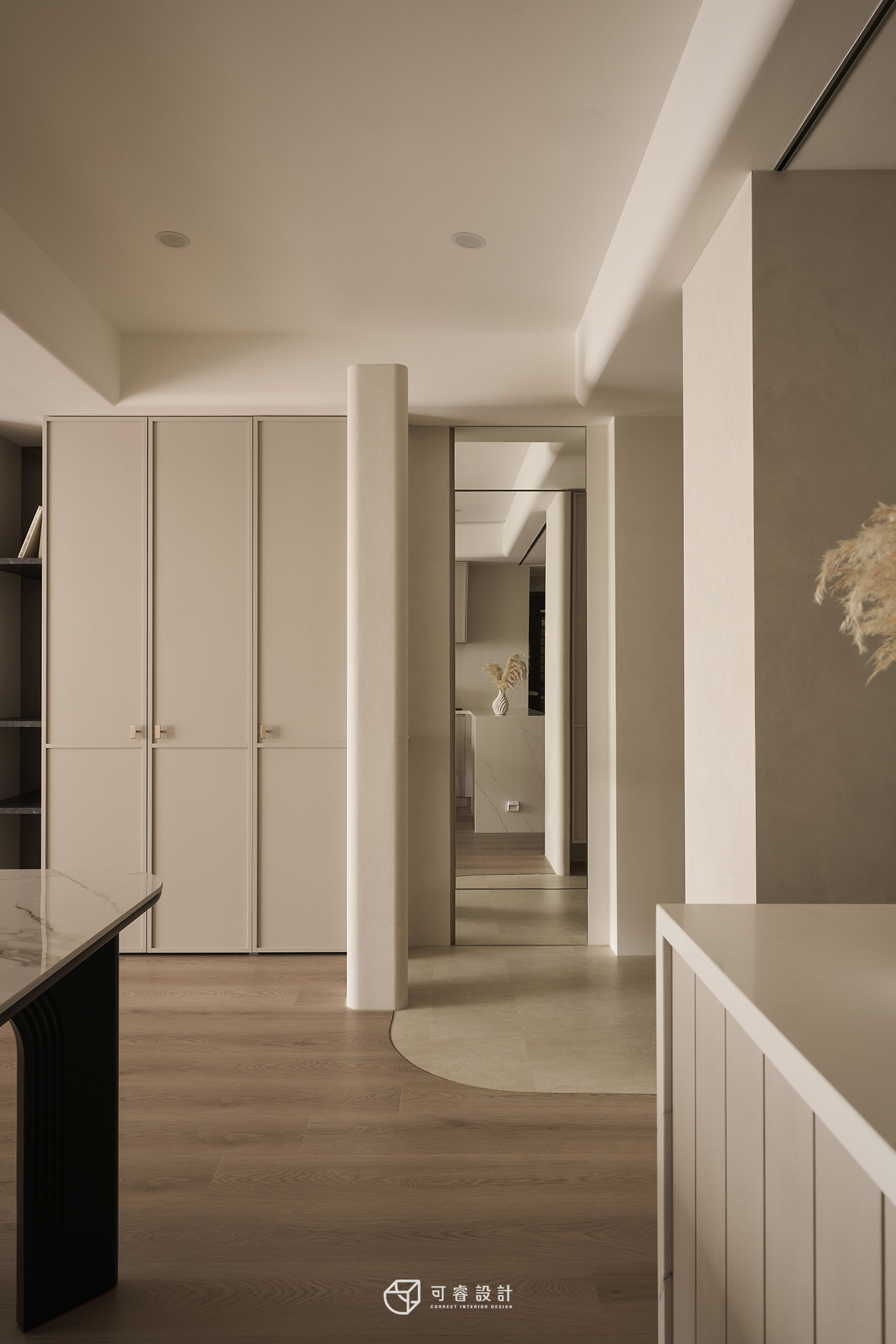 腳下的木質地坪則以暖意平衡石材的冷冽。